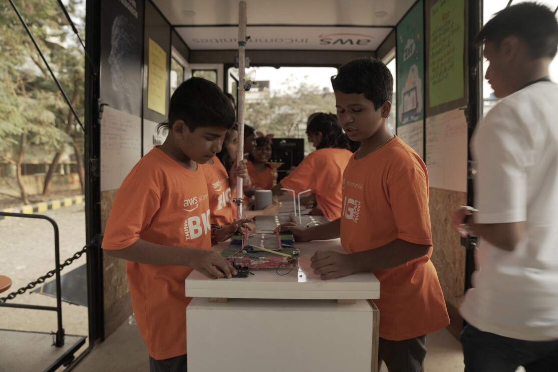 The program will reach out to 3000 students (Grades 6-9) every year in Navi Mumbai through this initiative, building a love for technology and innovation. The students will go through three levels of innovation training as part of the program and two dedicated innovation coaches will help students as they navigate the various levels of the program. Students reaching the third level of the program will be encouraged to participate in state/national/international science competitions. The mobile Think Big space will remain open on Saturdays for such students to work on their projects and the Innovation coaches will support them during the various stages of the competitions. AWS employees will participate in the initiative as volunteers, mentors and coaches.