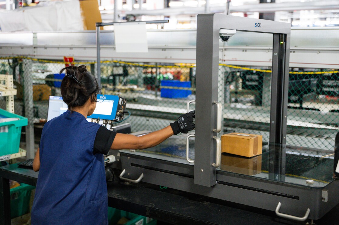From here, it is on to the Cubiscan station. Technology enables us to ensure faster fulfilment and delivery and the Cubiscan machine can measure the volume and dimensions of objects. Depending on the status of the products at the time of receiving, they are sorted and assembled in red (damaged goods that do not go into inventory), yellow (ready to be stored) or green (size to be measured by the Cubiscan machine) totes, ready for storage.