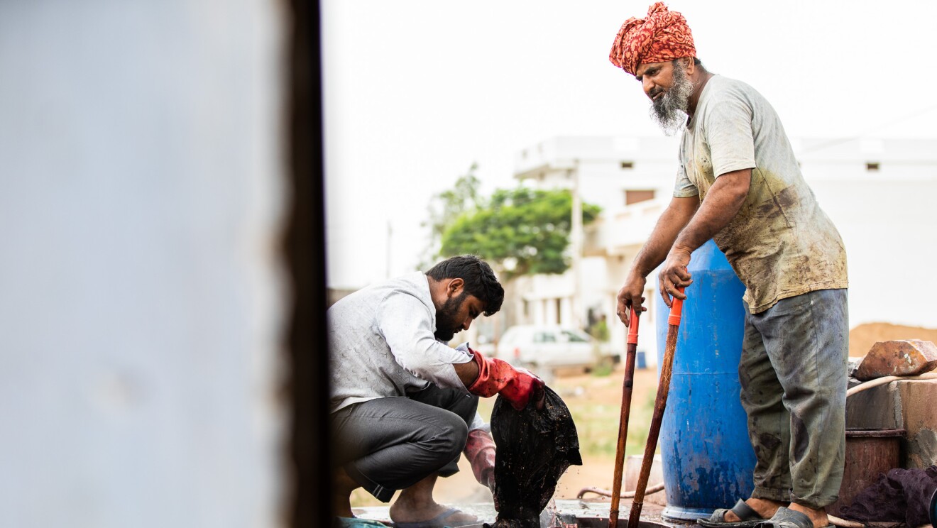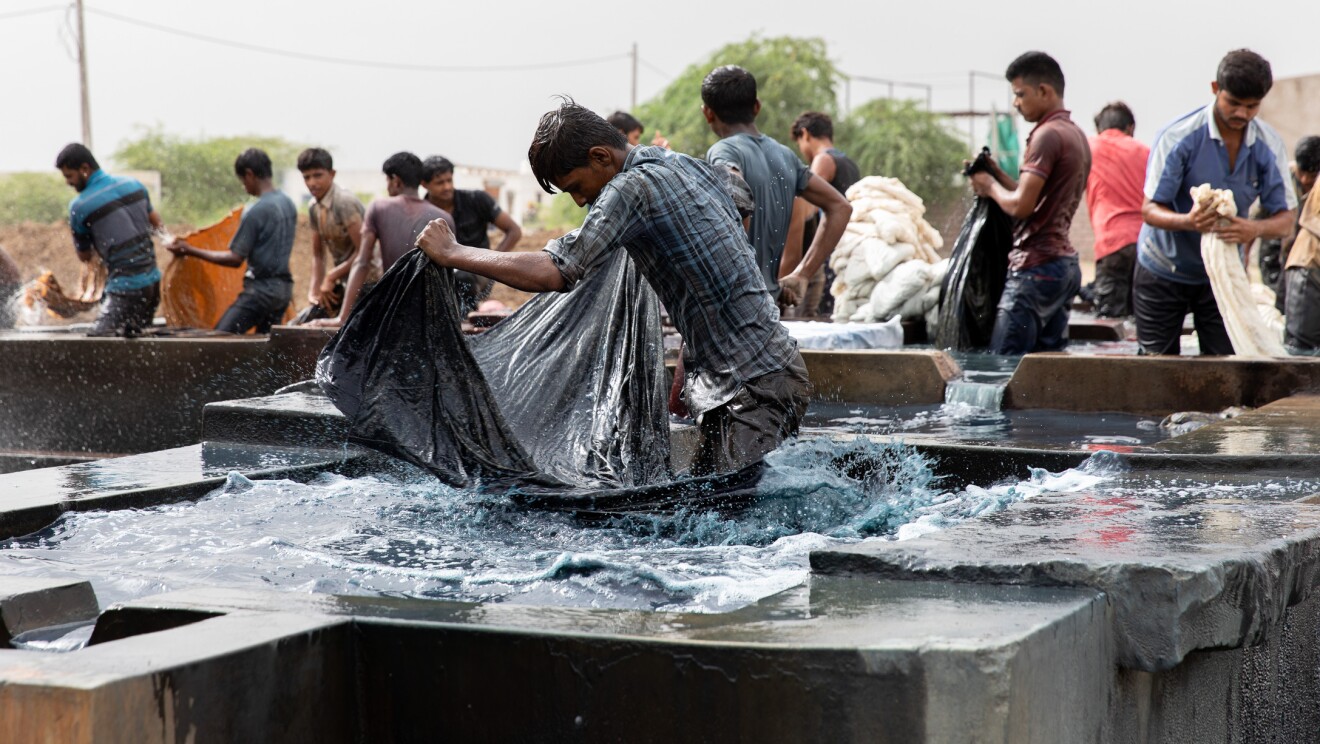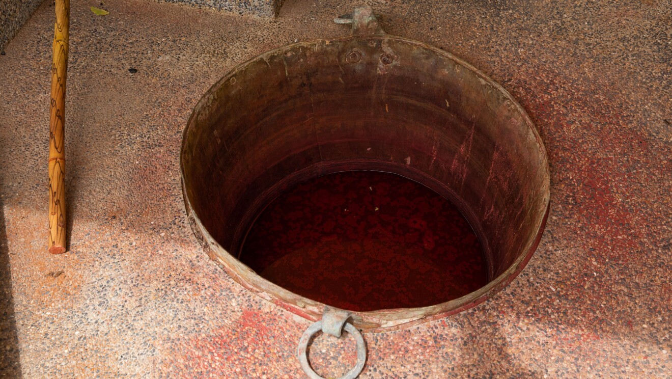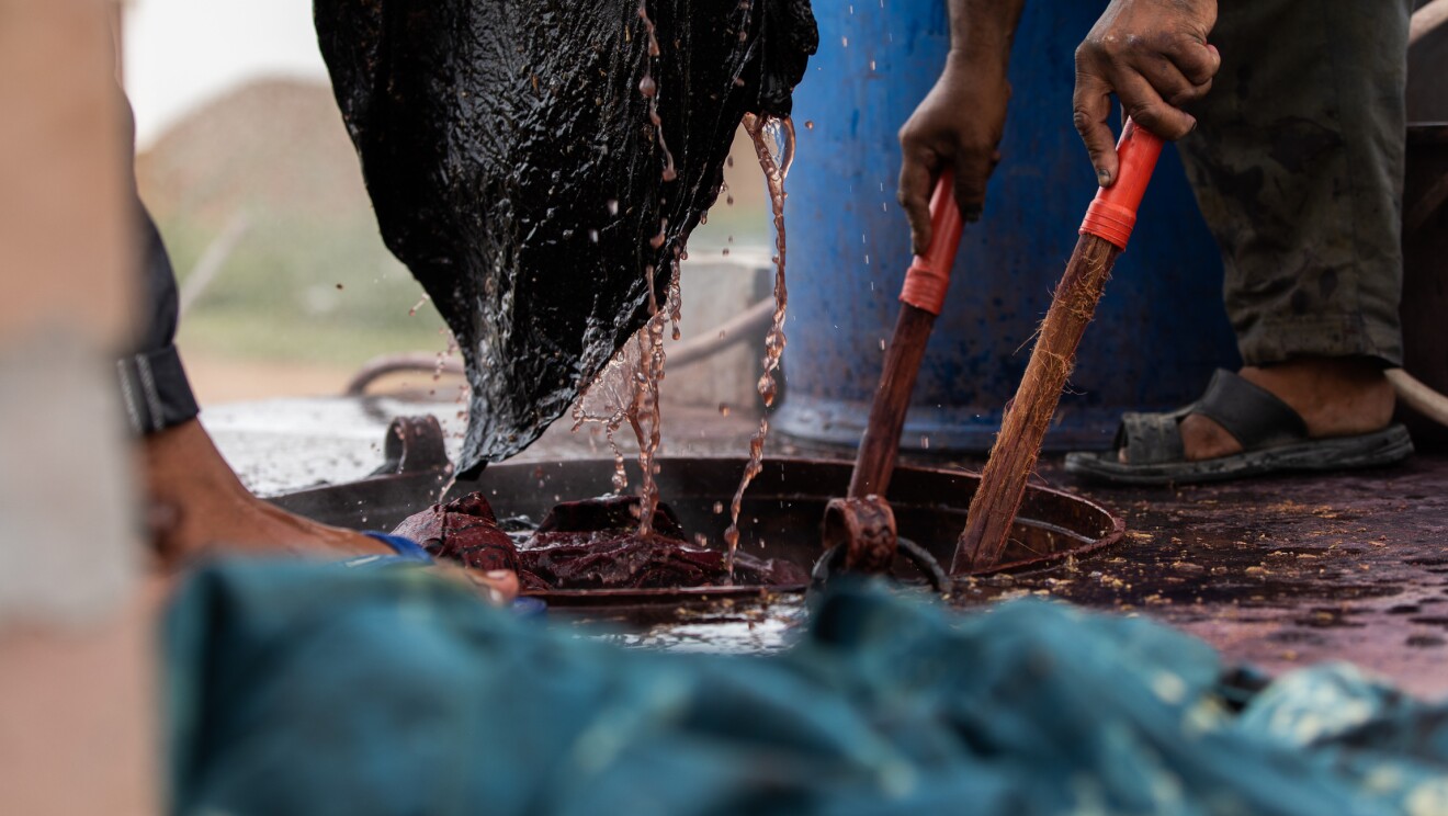 4. It is hard to believe that the artisans use rusted iron to create dye! Scrap iron, jaggery and tamarind is soaked in water for two weeks and then cooked over flame to create the black dye for Ajrakh.